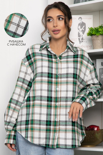 Рубашка оверсайз Дарика (бело-зеленая) Б14263-30М